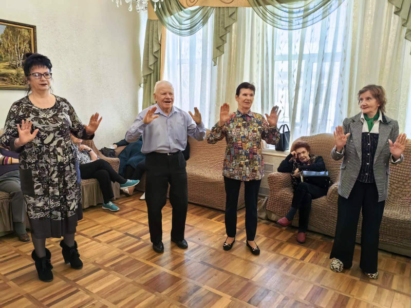 Йога смеха — один из самых быстрых способов снизить стресс и отличное средство для высвобождения эмоций. Тренер Казанцева Е. В. провела для пенсионеров, отдыхающих в отделении дневного пребывания, занятие по йоге смеха. Елена Вадимовна рассказала о том, как с помощью определённых упражнений, дыхательной гимнастики, игротерапии и релаксации можно уменьшить проявление симптомов у пациентов с ревматоидным артритом, остеоартритом, диабетом, с повышенным давлением, аутоиммунными расстройствами, а также улучшить кровообращение, поддержать эмоциональный баланс, укрепить иммунную систему, победить стресс и депрессию, снять приступы тревоги и панические атаки.