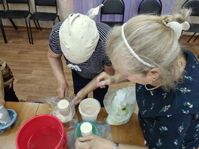 В отделении дневного пребывания на кружке «Волшебный клубочек» отдыхающими были изготовлены грибы для сада из гипса.