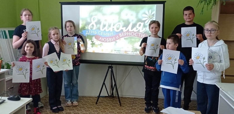 Мероприятие началось с просмотра видеоролика для детей о семье. Заведующая отделением социального обслуживания семьи и детей рассказала про историю возникновения праздника, его символ – ромашку, которая с древних времён была знаком любви. Затем участникам мероприятия было предложено поучаствовать во флешмобе «Символ праздника-белая ромашка».